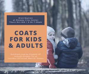 Donations of winter gear (coats, bibs, boots, mittens, etc) can be dropped at Transfers Unlimited for a Roseau Women of Today Coat Drive. Anything for kids to adults is welcome. Those donations can be dropped off through Wednesday.